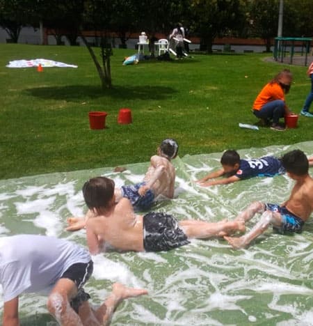 - Pista enjabonada - Plástico 3x4 metros - Agua y jabón